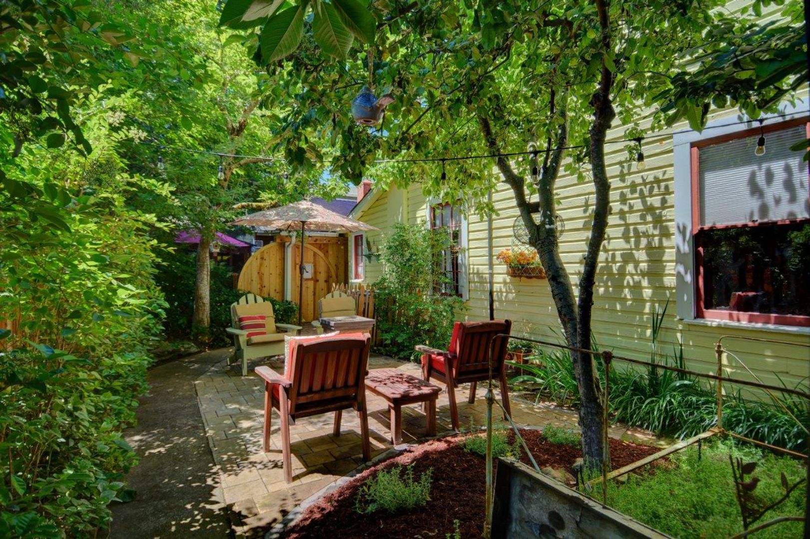 This charming cottage is located downtown in the heart of historic Jacksonville. The Inn on 5th provides a modern lodging alternative, combining all the comforts of home with the casual yet elegant décor of a boutique hotel. Inside you will find 3 delightful bedrooms with beautiful views of the flower gardens, historic churches, and more. The upstairs master bedroom encompasses the entire upstairs complete with reading nooks and a large whimsical chess board.